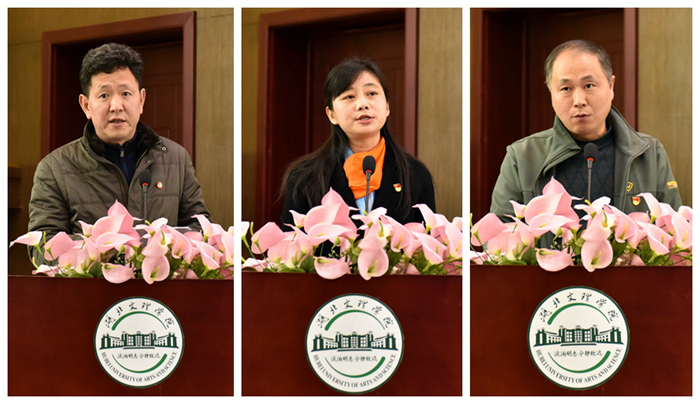 体育学院党委书记袁红星、音乐与舞蹈学院党委书记姜俊毅、数学与统计学院党委书记刘浩分别作党风廉政建设工作交流发言。