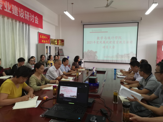 (数学与统计学院 通讯员 耿付荃)2021年9月23日下午,数学与统计学院在学院会议室召开2021年党风廉政建设宣教月活动动员大会。学院领导班子成员、全体教职工参加,会议由党委书记刘浩主持。