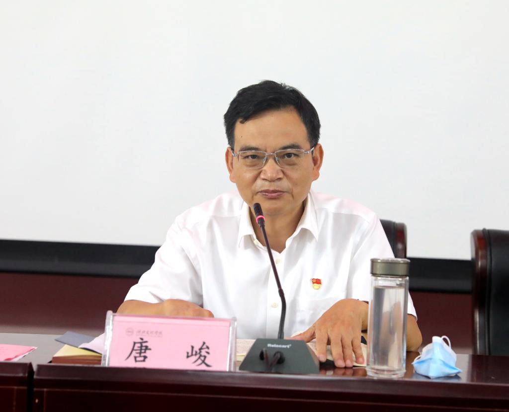 唐峻要求,要深入学习贯彻习近平总书记关于全面从严治党的重要论述和习近平总书记在庆祝中国共产党成立100周年大会上的重要讲话精神,不断增强“两个维护”的思想自觉,不断增强全面从严治党的政治自觉,不断将全面从严治党向纵深推进,担起管党治党、办学治校政治责任。