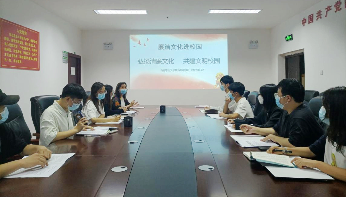 (通讯员 胡紫怡 王遂敏)为激励广大青年进一步增强政治责任感和历史使命感,扣好第一颗“清廉纽扣”,更好地发挥新时代大学生廉洁教育的实效性与创新性,9月22日晚,马列研读社组织社团骨干开展主题为“弘扬清廉文化,共建文明校园”的党风廉政建设宣传教育月读书活动,将廉洁的种子深植大学生的心中。