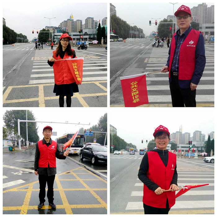 自上而下:胡敏、陈道斌、胡磊、李小俞进行文明交通引导