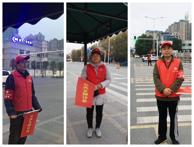每逢周末和节假日,在檀溪路广电中心十字路口都能看到身着红马甲、头戴小红帽、手挥引导旗的湖北文理学院志愿者。