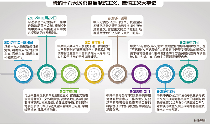 习近平总书记指出,形式主义、官僚主义同我们党的性质宗旨和优良作风格格不入,是我们党的大敌、人民的大敌,要求全党充分认识形式主义、官僚主义的长期性、复杂性、多样性、变异性,坚决与之作斗争。党的十九届四中全会强调,大力纠治形式主义、官僚主义。安徽省深入结合“不忘初心、牢记使命”主题教育,针对形式主义、官僚主义等突出问题,在全省开展“以案示警、以案为戒、以案促改”警示教育,向形式主义、官僚主义等顽瘴痼疾开刀,努力构建敢管敢治、严管严治、长管长治的党建新生态。