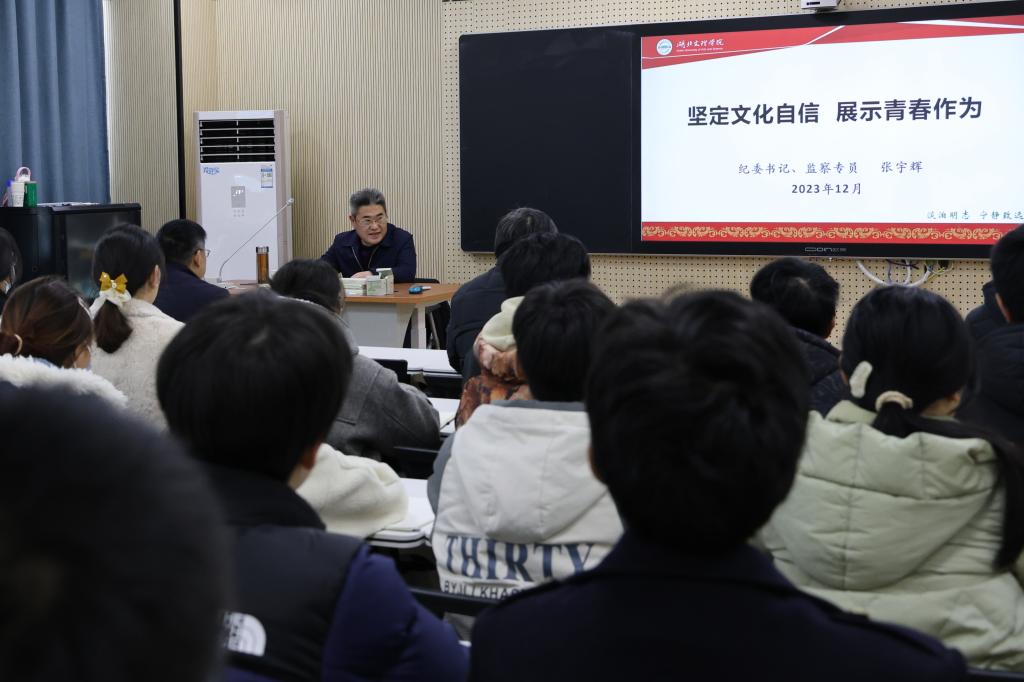(纪委·监察专员办公室 通讯员 肖孟佳)12月21日,学校纪委书记、监察专员张宇辉以“坚定文化自信 展示青春作为”为主题,为食品科学技术学院·化学工程学院第三十期党校学员讲授思政课。