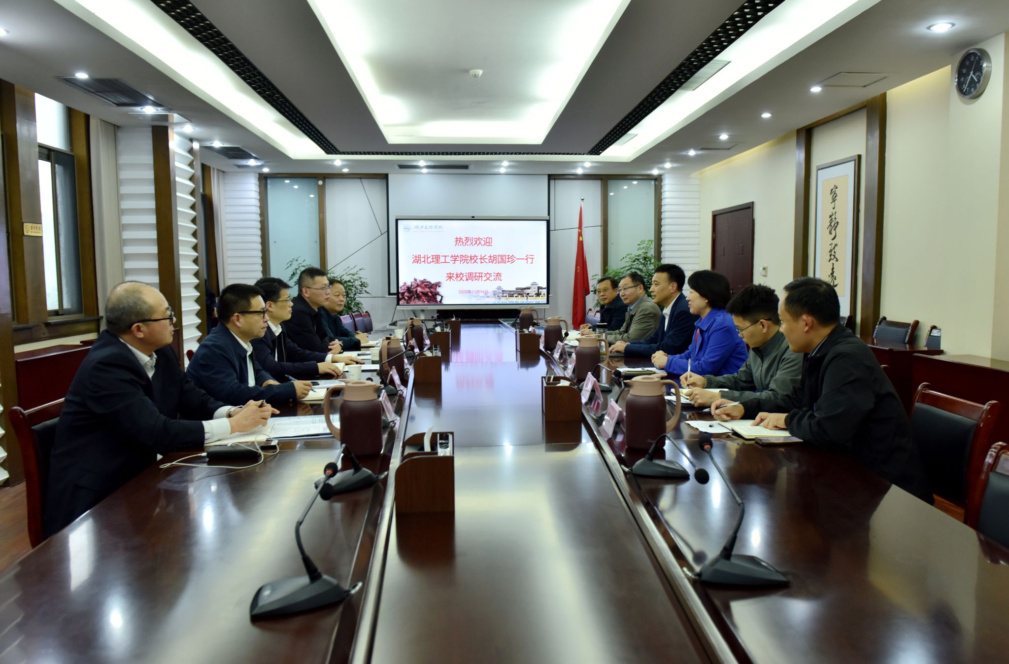 (党政办 通讯员 陆平涛)10月16日,湖北理工学院校长胡国珍一行来校调研交流。学校校长杜国锋接待胡国珍一行,副校长汪云主持调研座谈会。